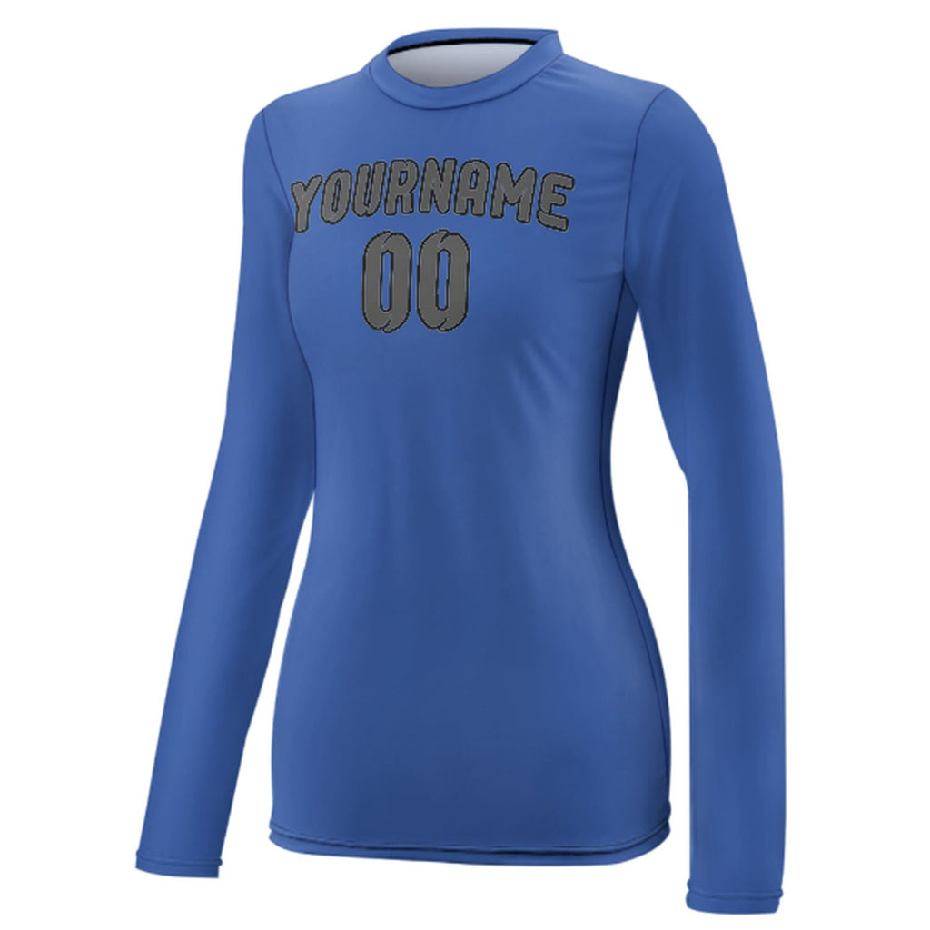 Custom Sky Blue Dark Grey Women's Long-Sleeve Shirt