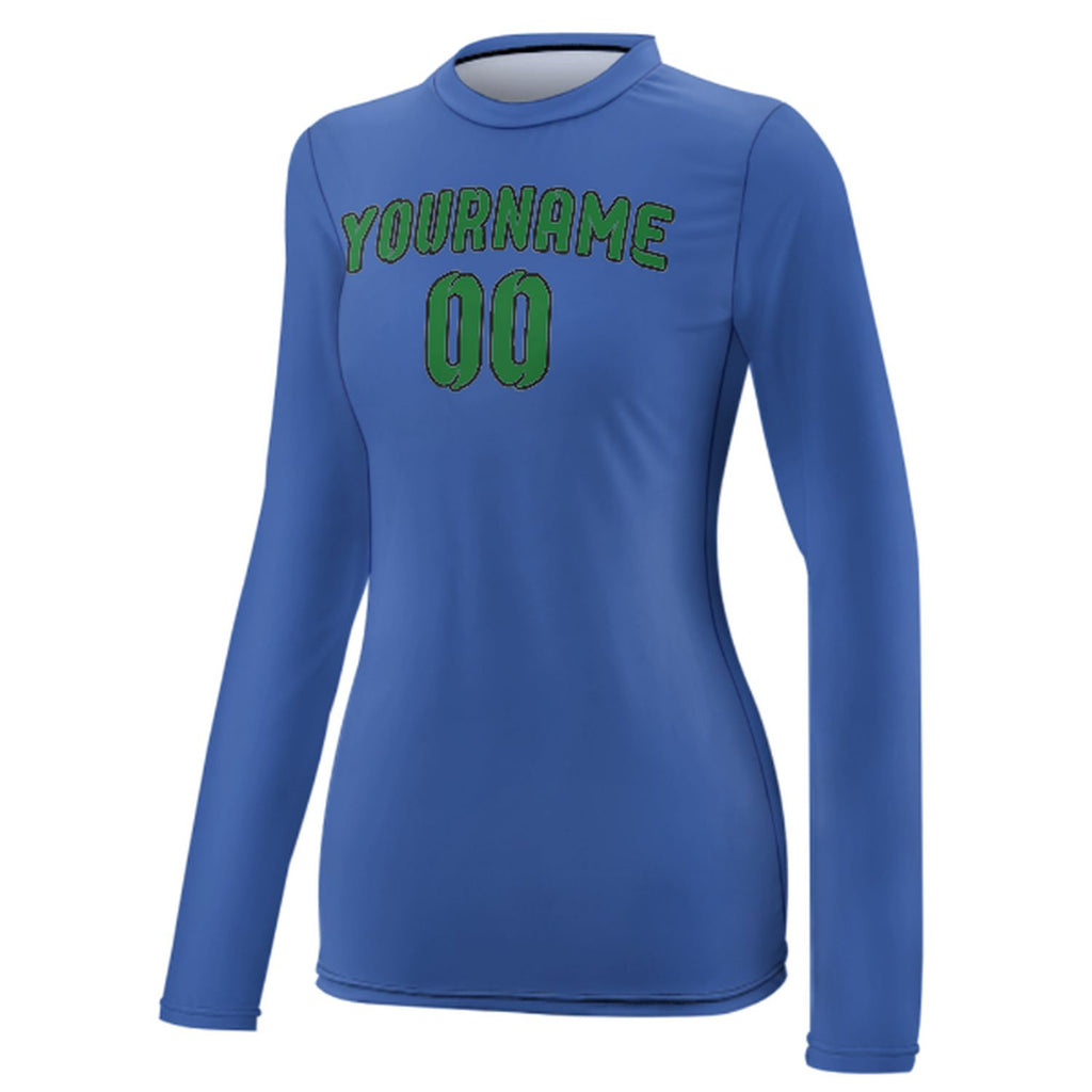 Custom Sky Blue Emerald Green Women's Long-Sleeve Shirt