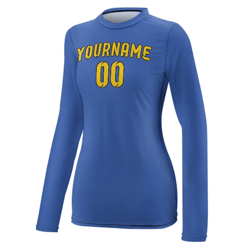 Custom Sky Blue Gold Women's Long-Sleeve Shirt
