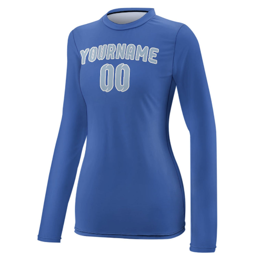 Custom Sky Blue Light Blue Women's Long-Sleeve Shirt
