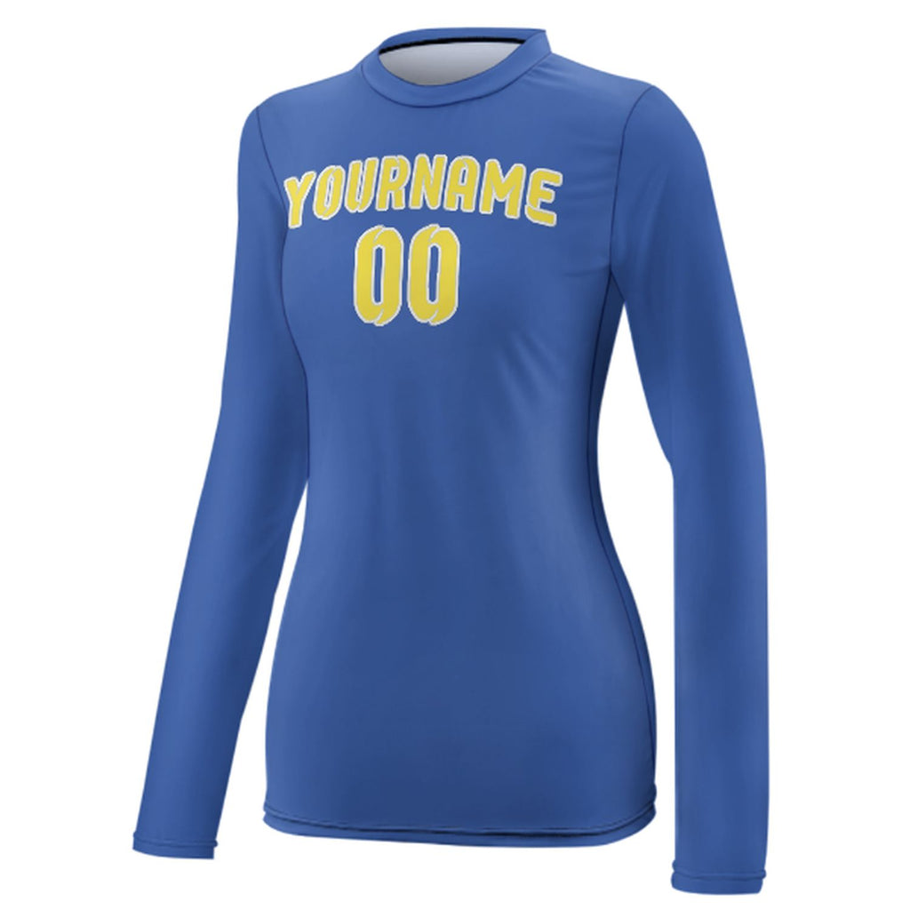 Custom Sky Blue Light Yellow Women's Long-Sleeve Shirt