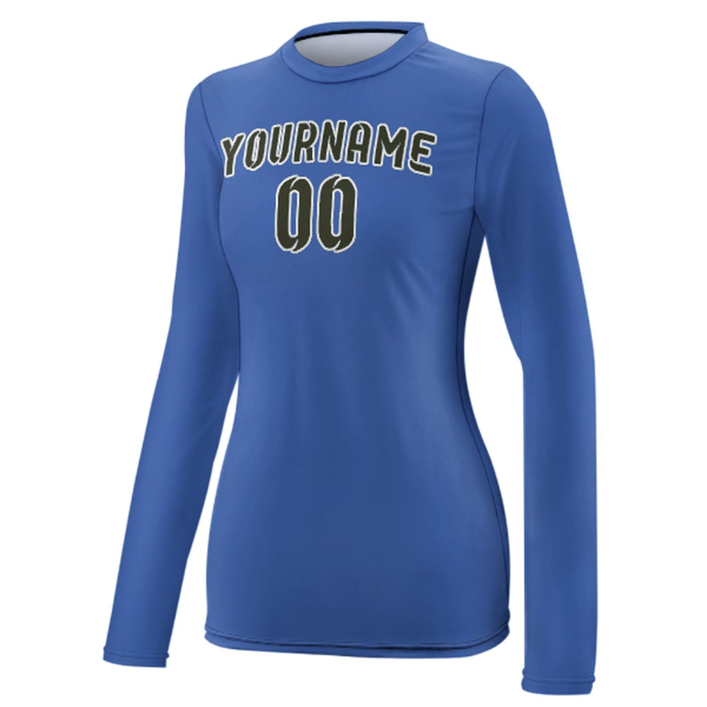 Custom Sky Blue Olive Women's Long-Sleeve Shirt