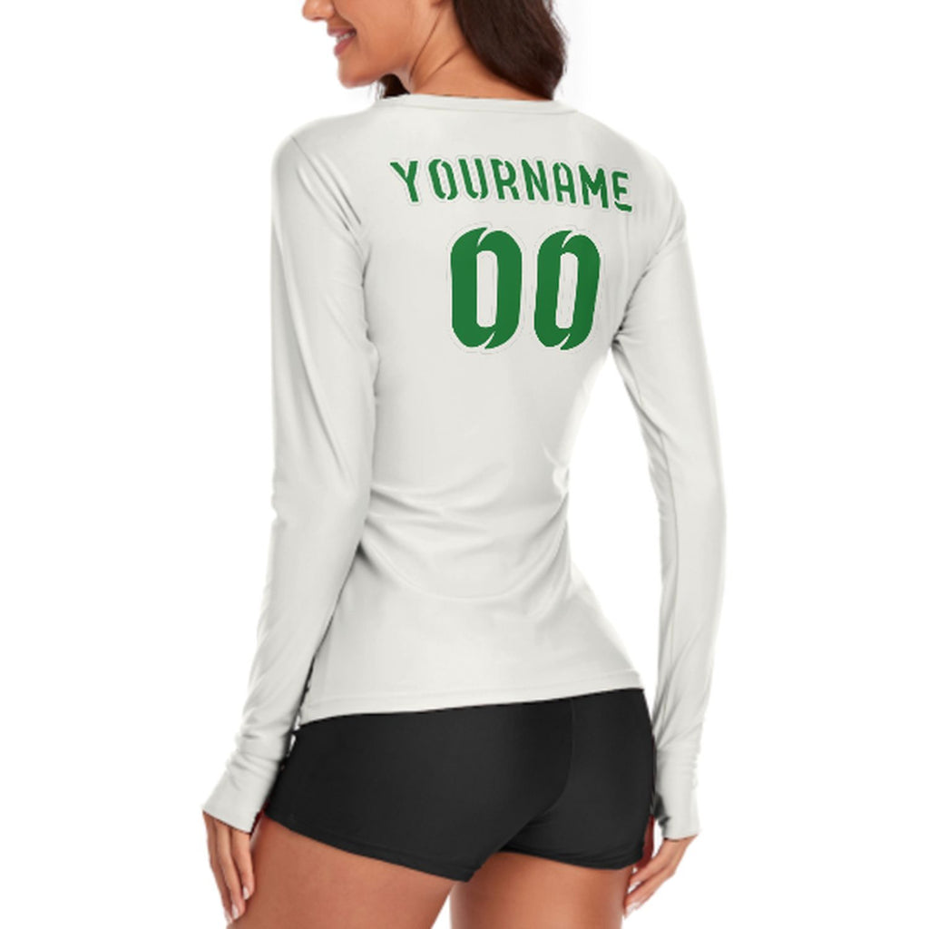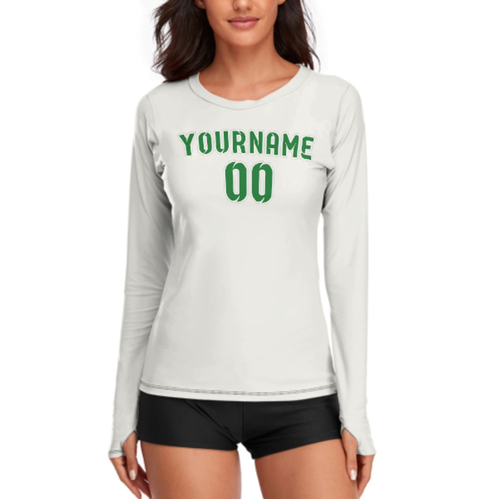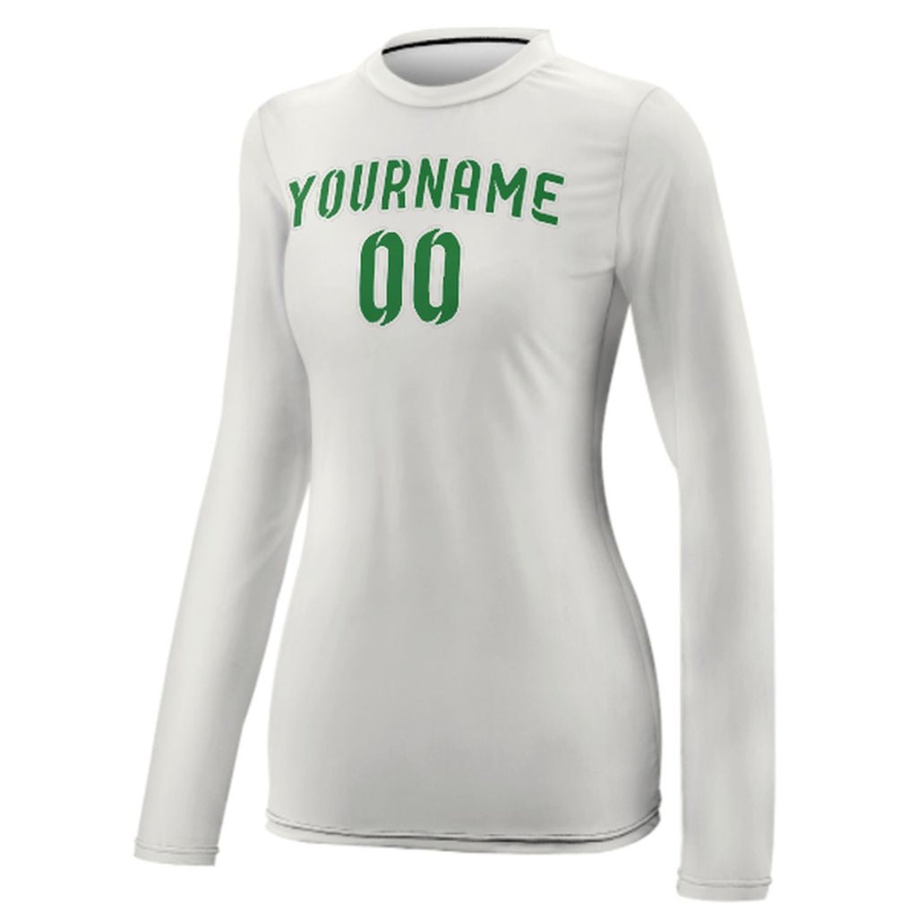 Custom White Emerald Green Women's Long-Sleeve Shirt