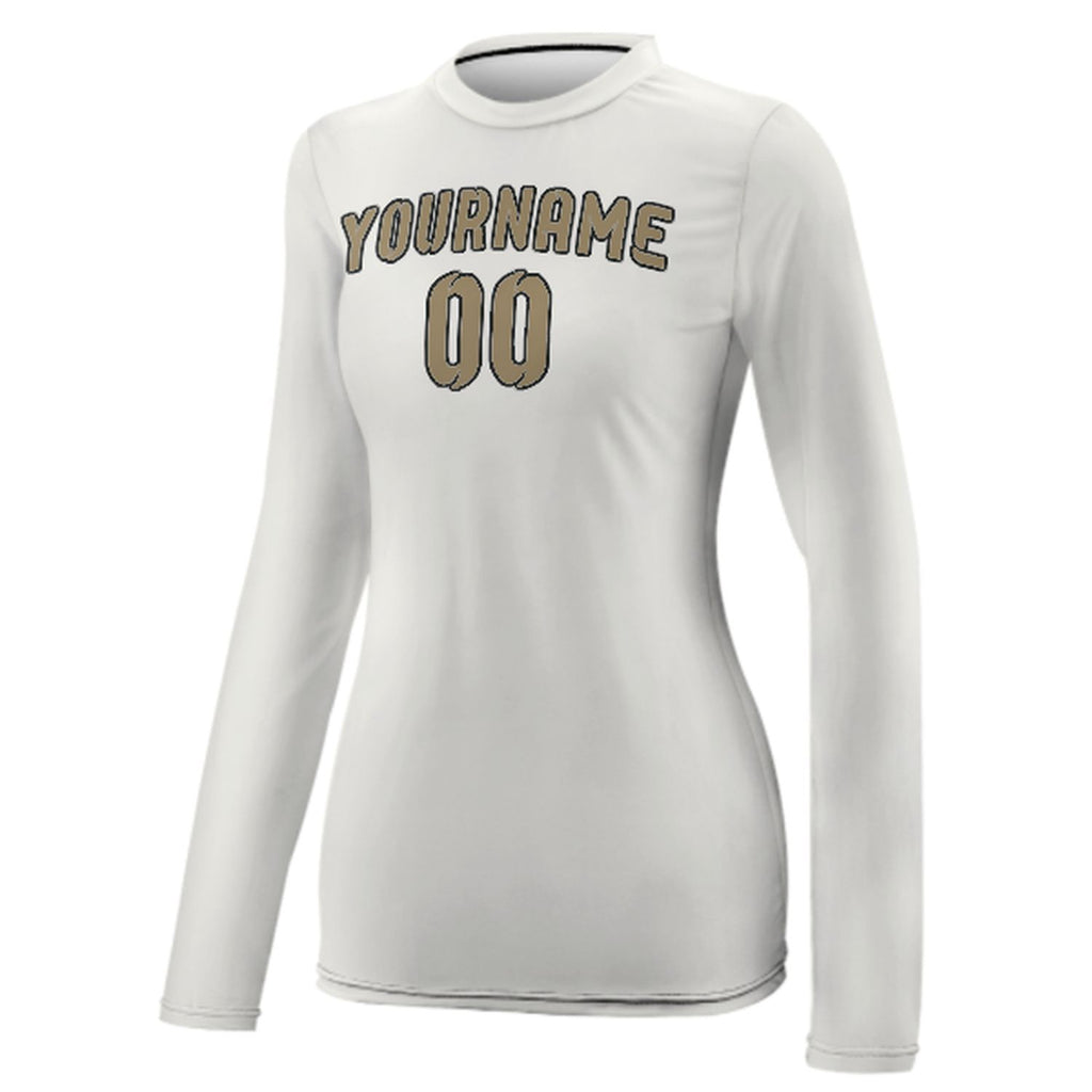Custom White Light Khaki Women's Long-Sleeve Shirt