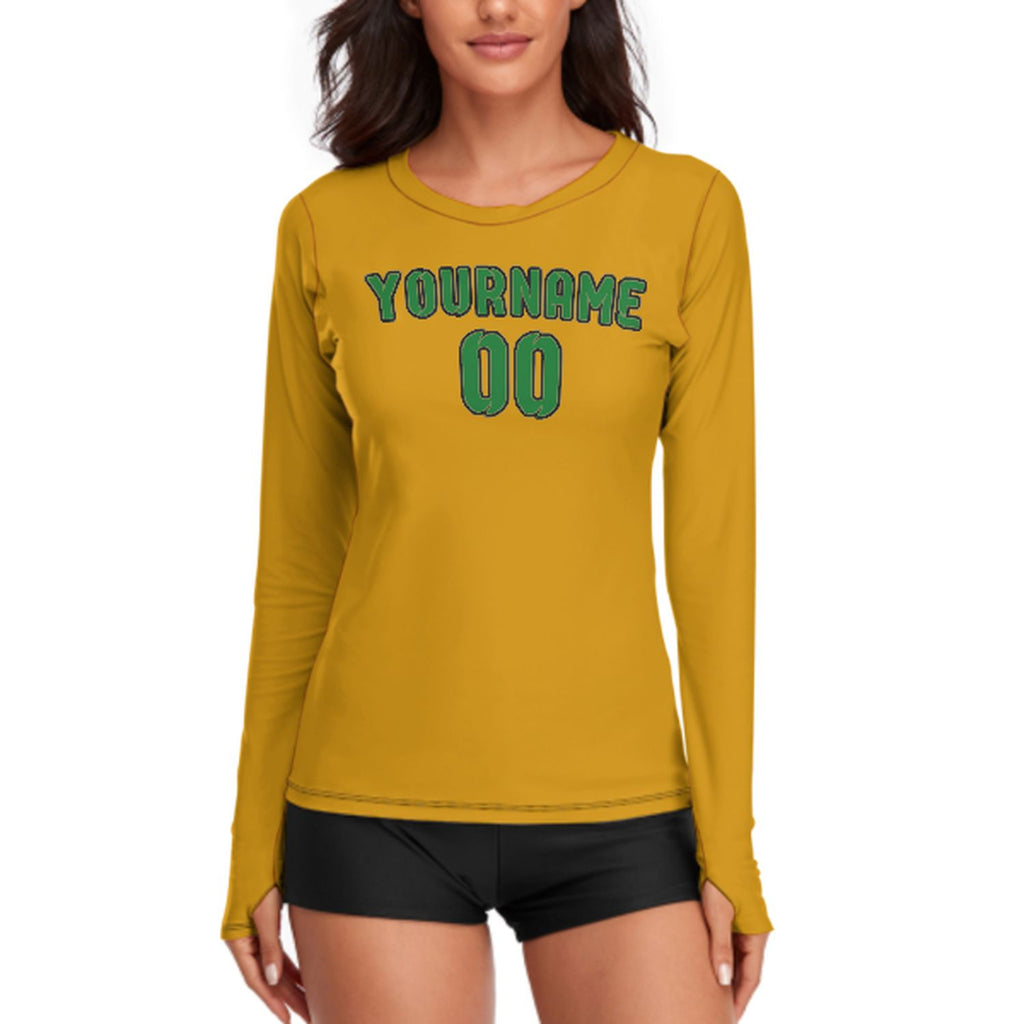 Custom Yellow Emerald Green Women's Long-Sleeve Shirt