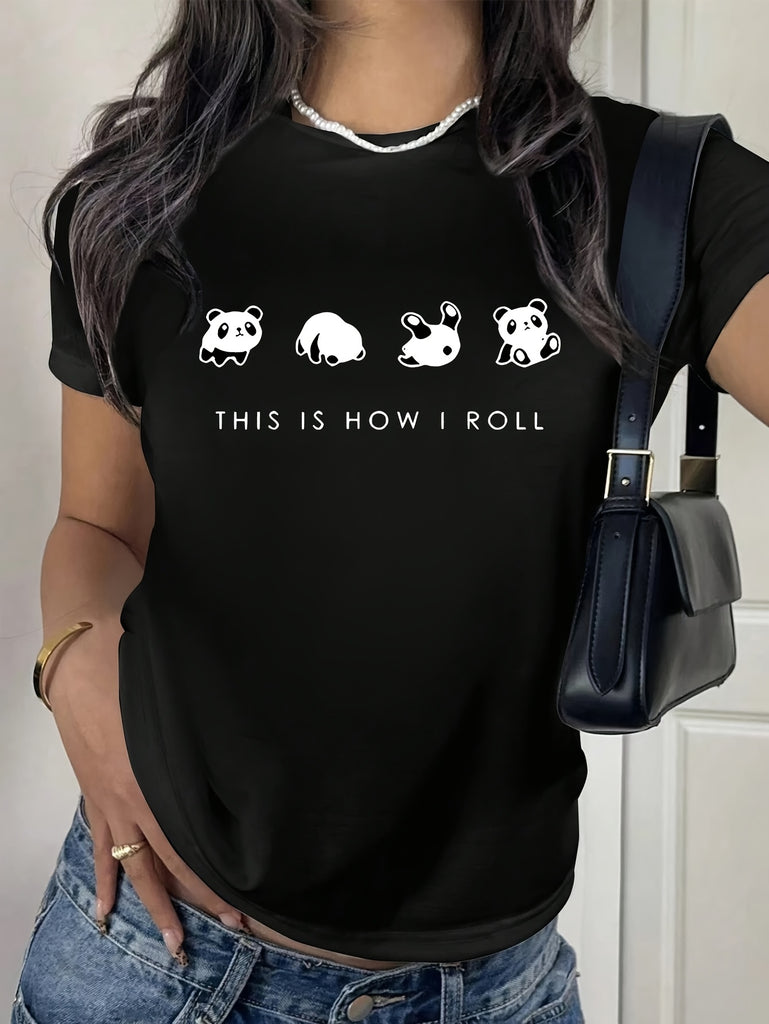 100 Cotton T Shirts For Women This Is How I Roll Playful Cute Panda Illustrations With Text Graphic, Vintage T Shirts Women, Women Tshirts