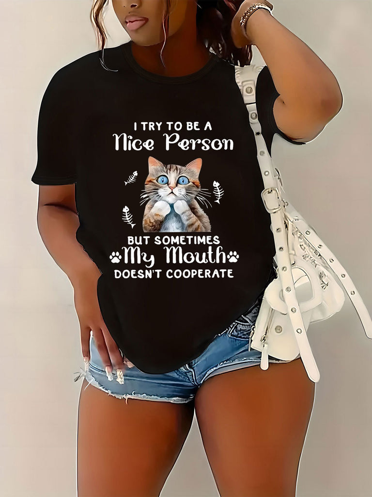 100 Cotton T Shirts For Women Try To Be A Nice Person Featuring Cute Cat With Playful Expression Tshirt, Womens Graphic Tshirts, Womens White Tee