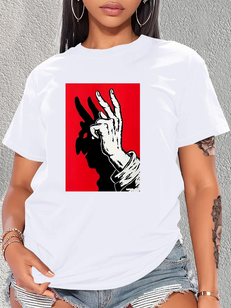 100 Cotton T Shirts For Women White Tshirt With Detailed Shadowy Hand Against Red Background, Shirt For Women, Womens Graphic Tees Vintage