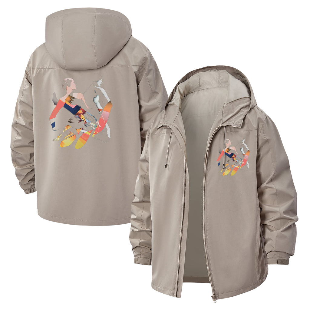 Abstract Athletic Figure Unisex Full-Zip Printed Waterproof Hooded Windbreaker