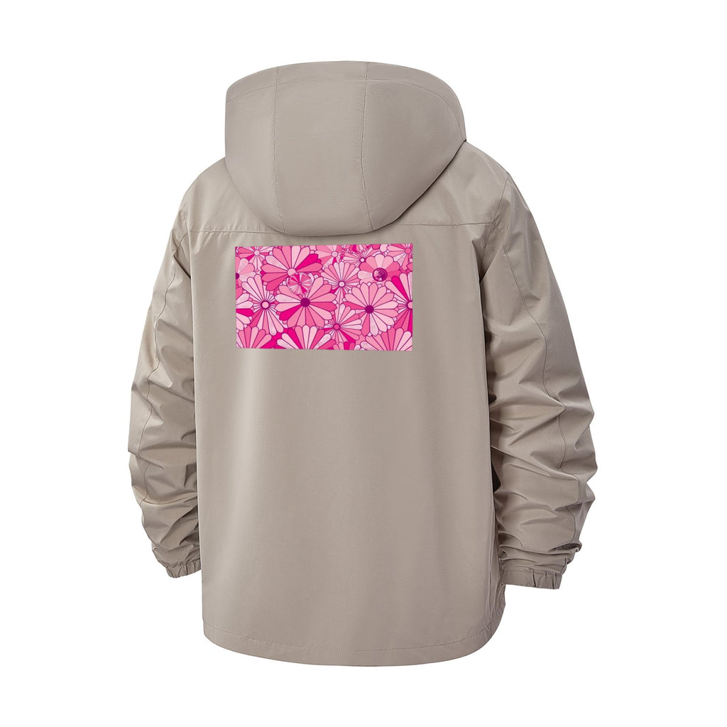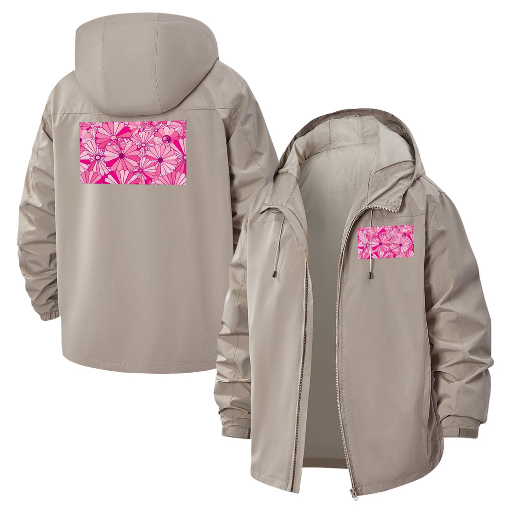 Abstract Floral Pattern Unisex Full-Zip Printed Waterproof Hooded Windbreaker