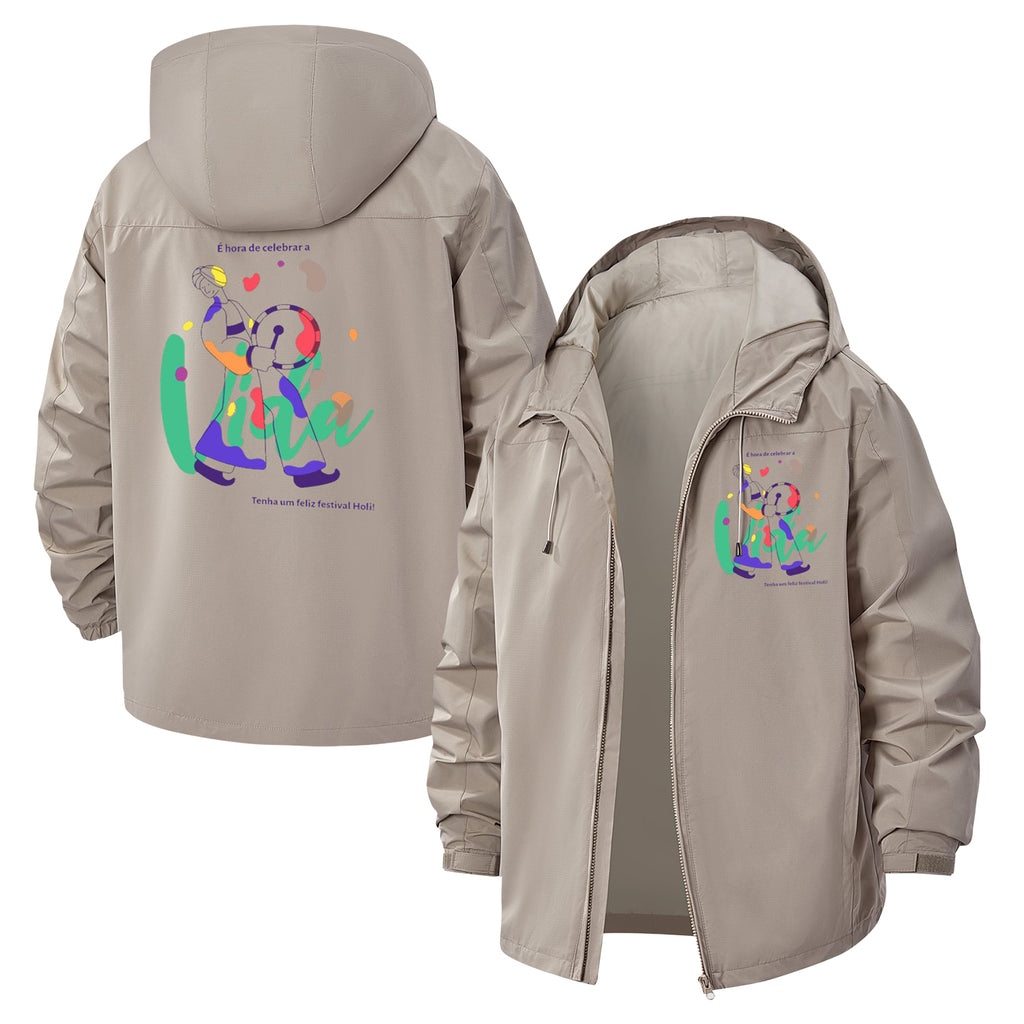 Abstract Libra Unisex Full-Zip Printed Waterproof Hooded Windbreaker