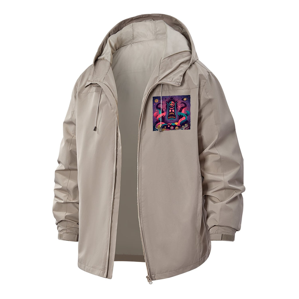 Abstract Monster Art Unisex Full-Zip Printed Waterproof Hooded Windbreaker