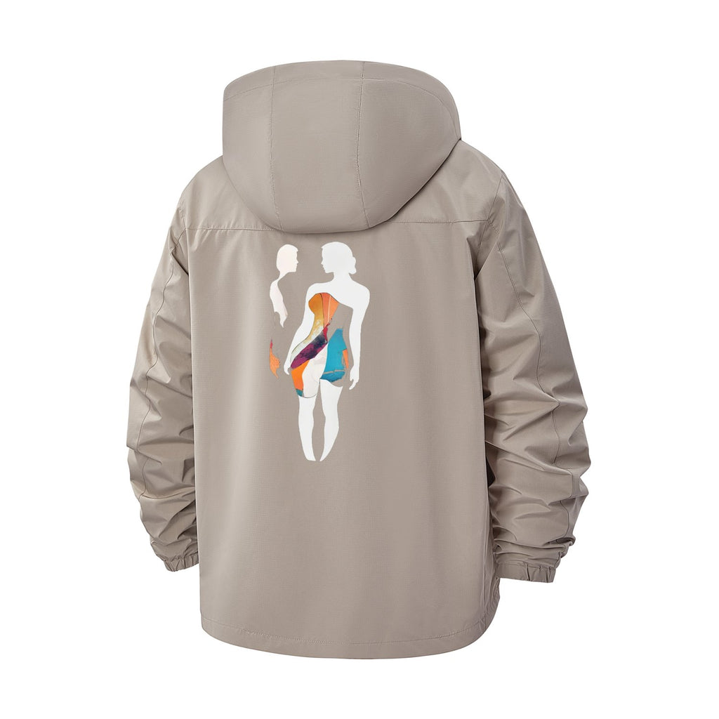 Abstract Silhouette Unisex Full-Zip Printed Waterproof Hooded Windbreaker