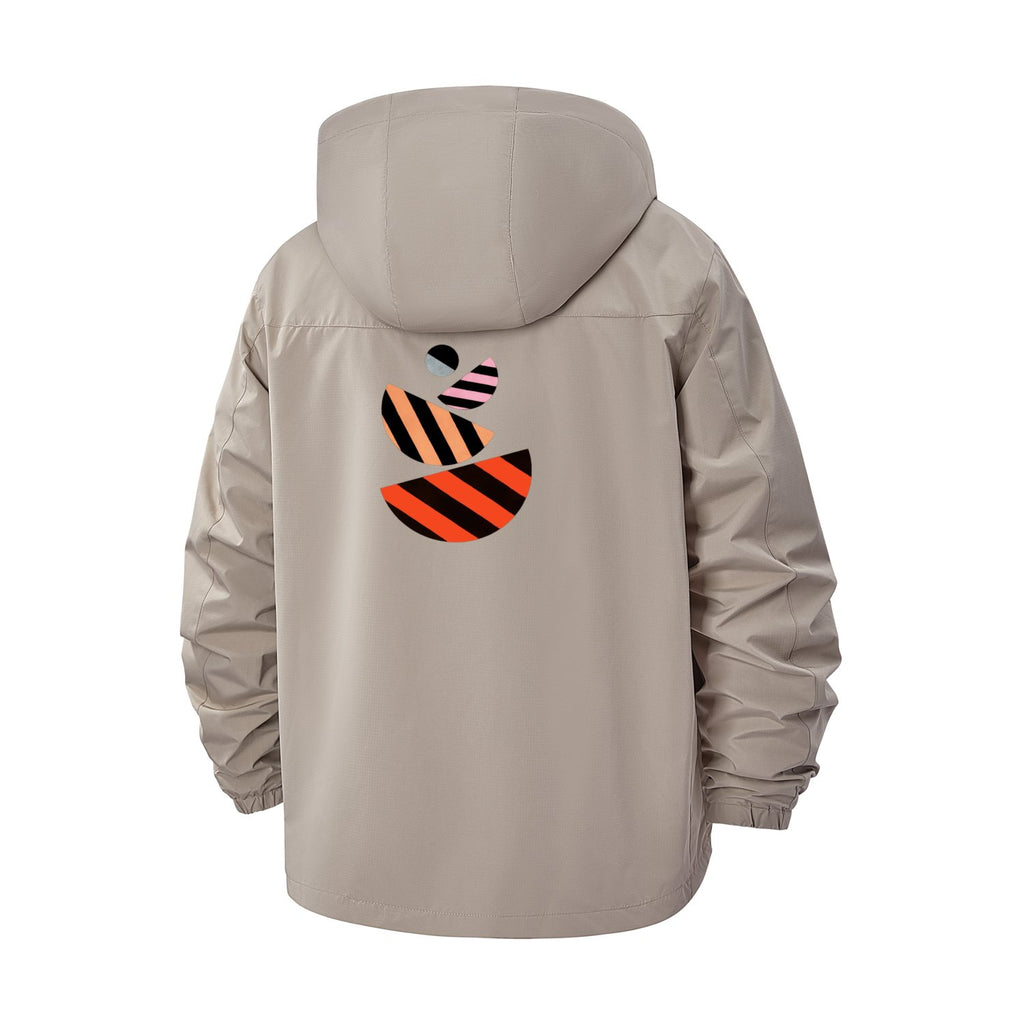 Abstract Striped Shapes Unisex Full-Zip Printed Waterproof Hooded Windbreaker