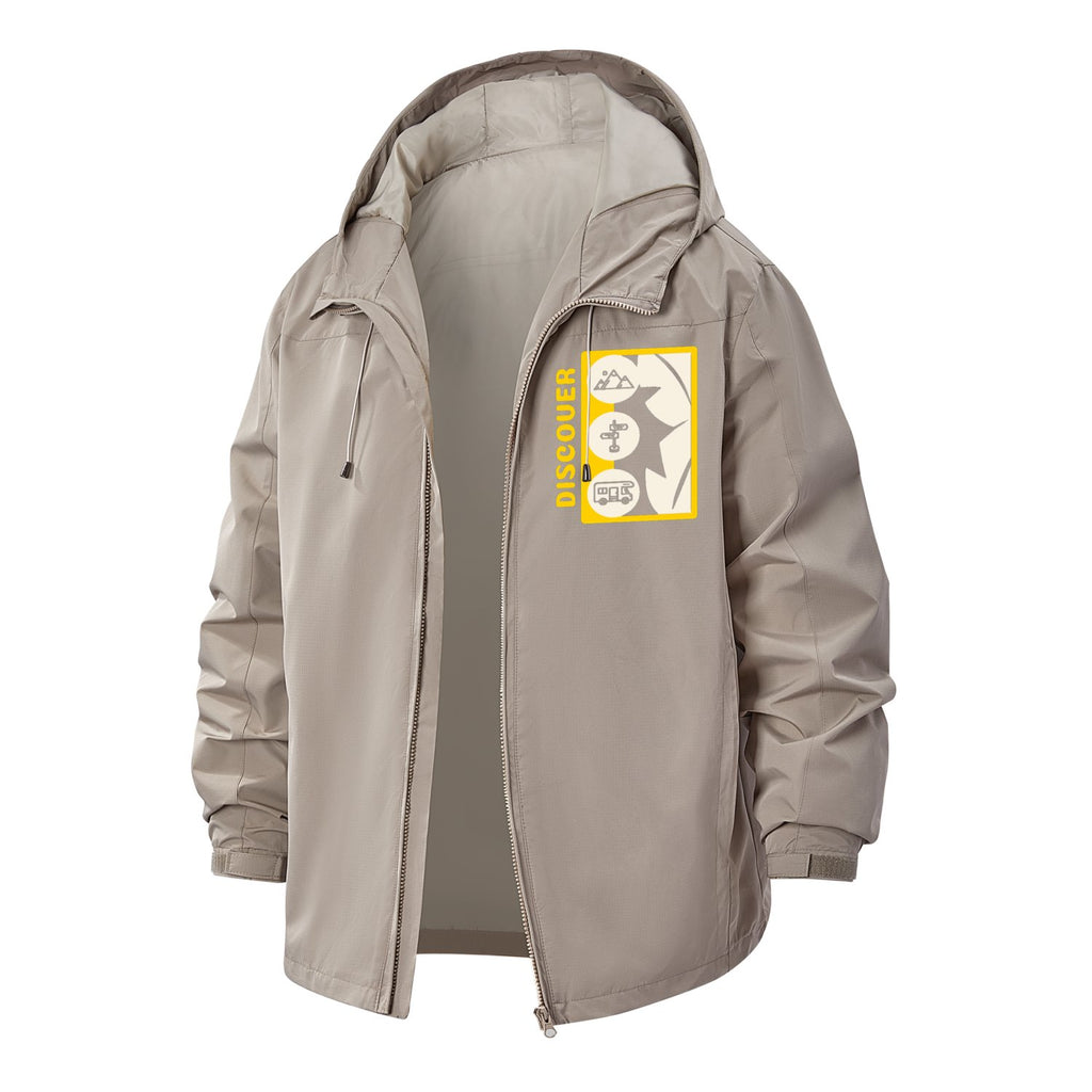 Adventure Icons Unisex Full-Zip Printed Waterproof Hooded Windbreaker
