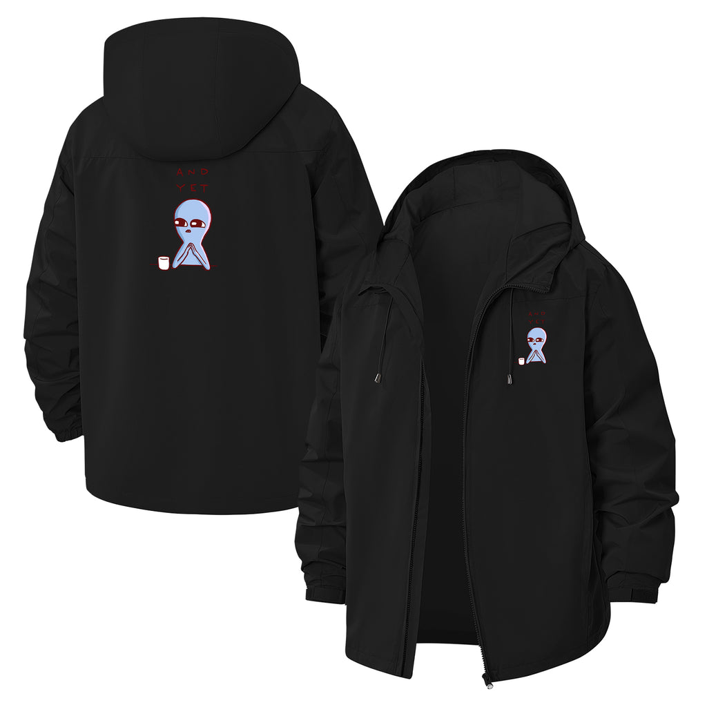 Alien Drinking Coffee Unisex Full-Zip Printed Waterproof Hooded Windbreaker