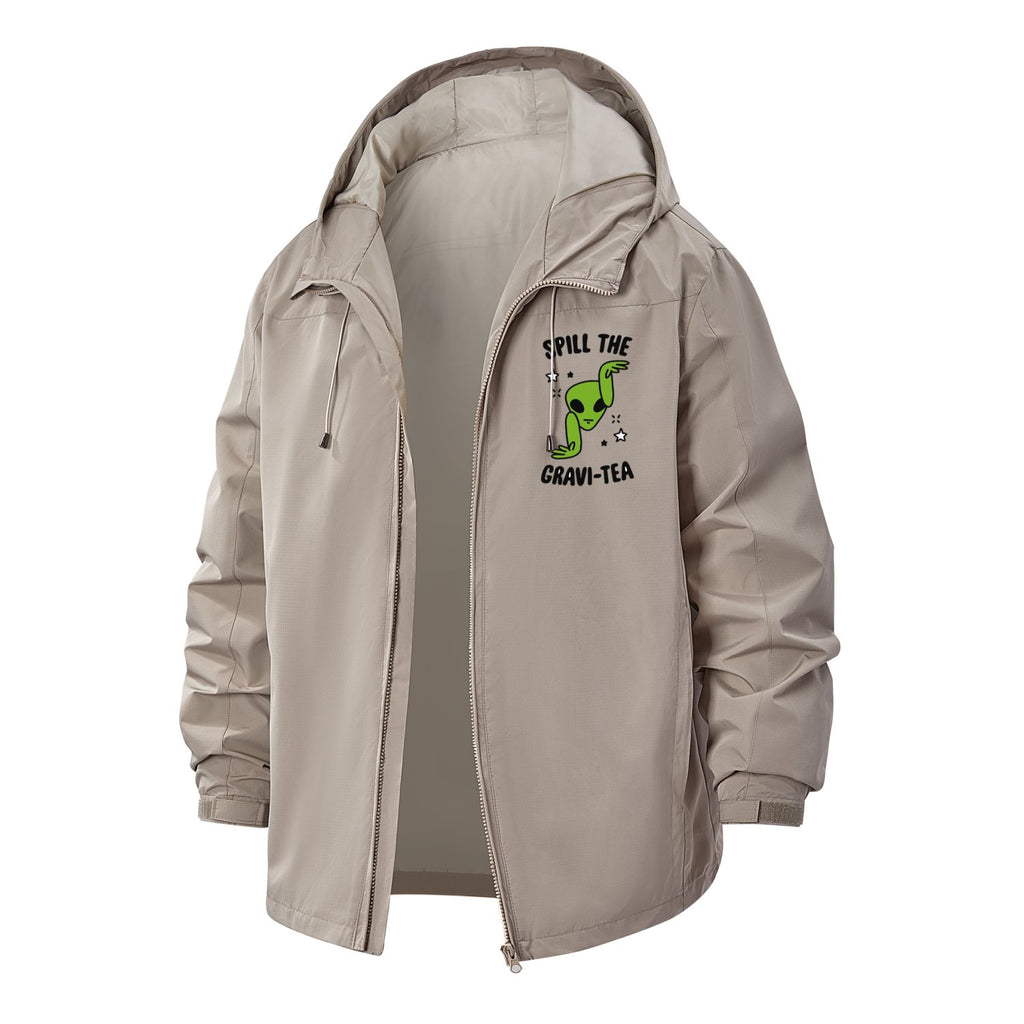 Alien Gravi-Tea Pun Unisex Full-Zip Printed Waterproof Hooded Windbreaker