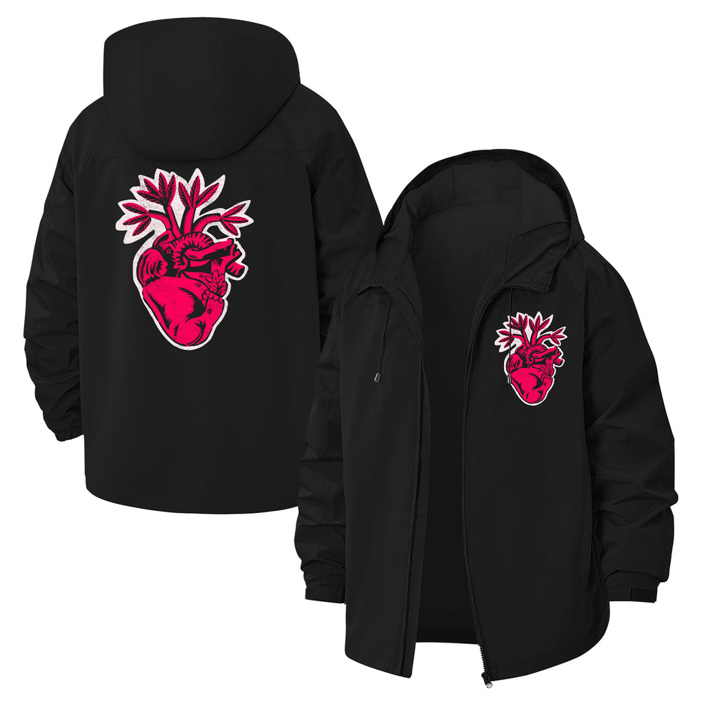 Anatomical Heart Botanical Unisex Full-Zip Printed Waterproof Hooded Windbreaker