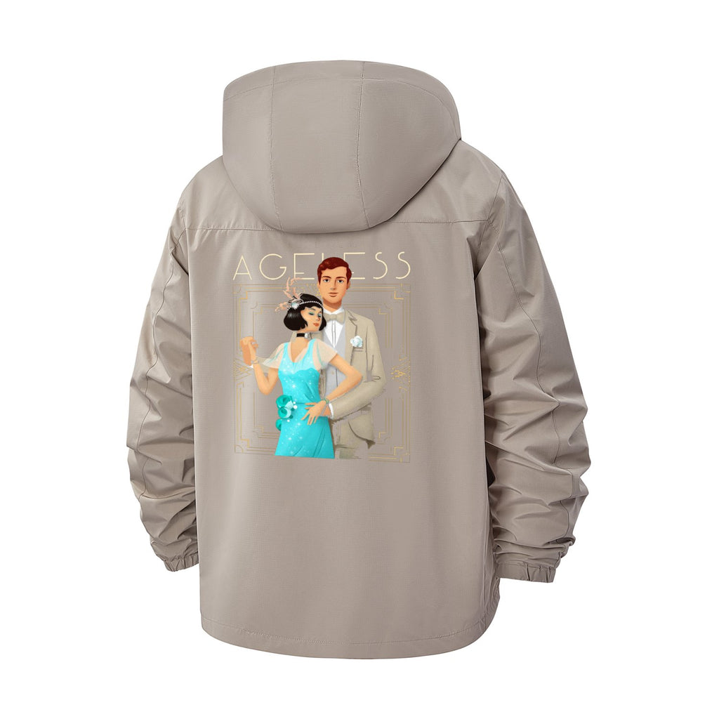 Art Deco Couple Unisex Full-Zip Printed Waterproof Hooded Windbreaker