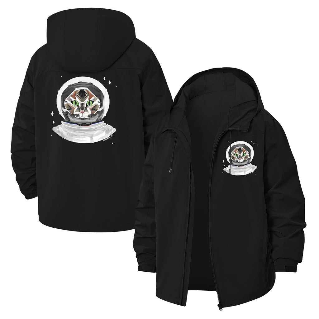 Astronaut Cat Unisex Full-Zip Printed Waterproof Hooded Windbreaker