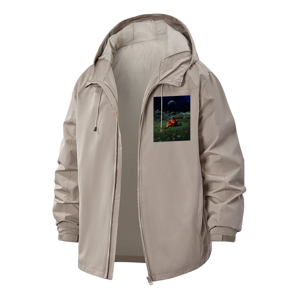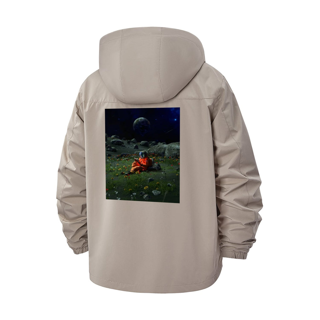 Astronaut on Lunar Landscape Unisex Full-Zip Printed Waterproof Hooded Windbreaker
