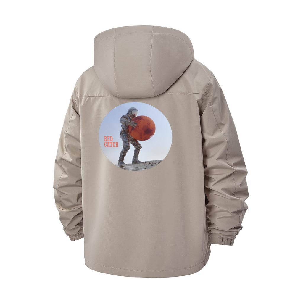 Astronaut Space Theme Unisex Full-Zip Printed Waterproof Hooded Windbreaker