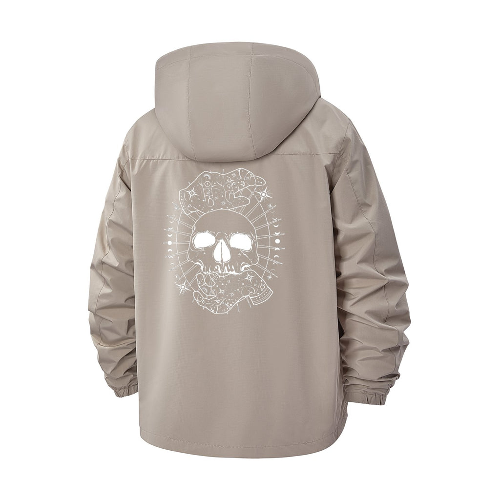 Barbed Wire Skull Unisex Full-Zip Printed Waterproof Hooded Windbreaker