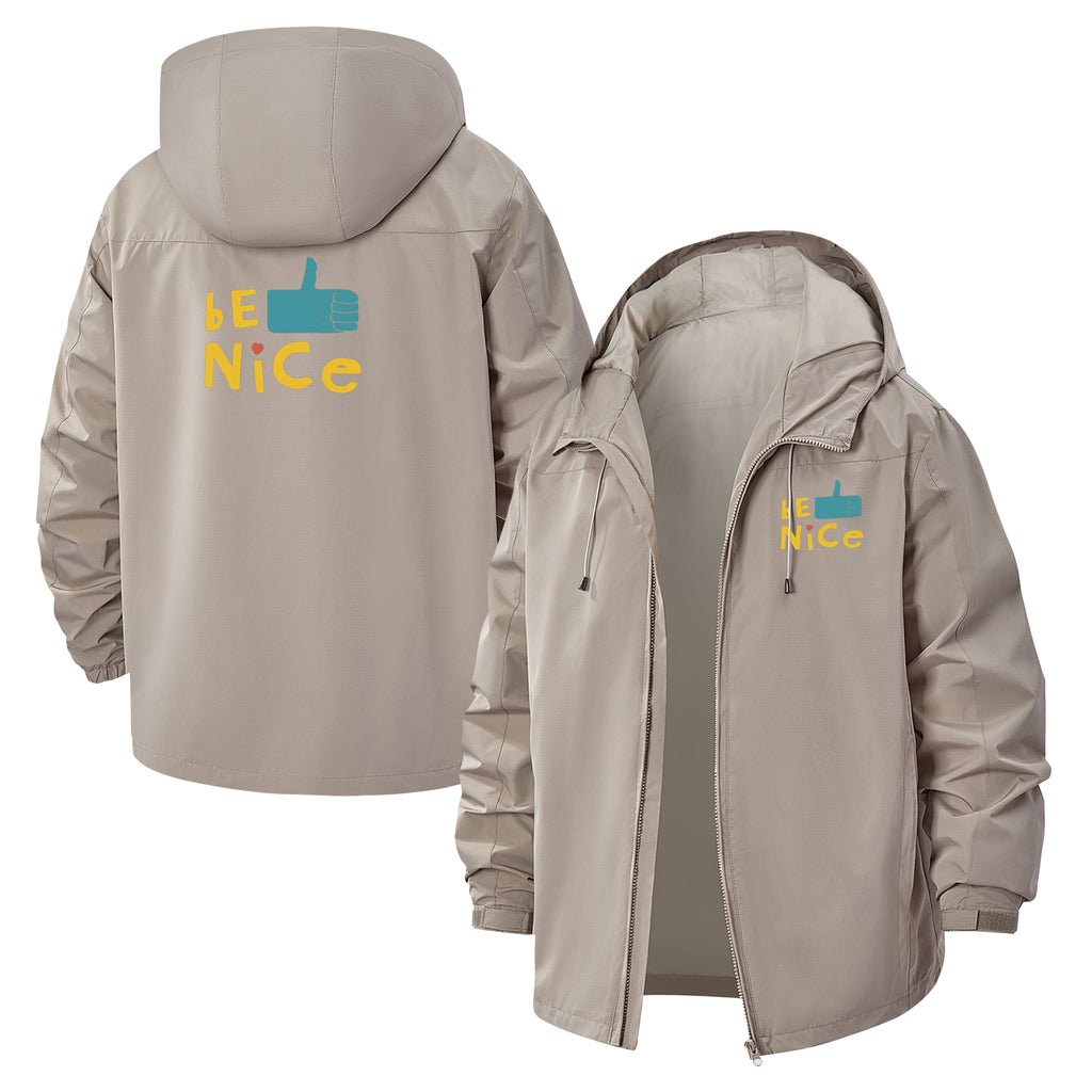 Be Nice Message Unisex Full-Zip Printed Waterproof Hooded Windbreaker