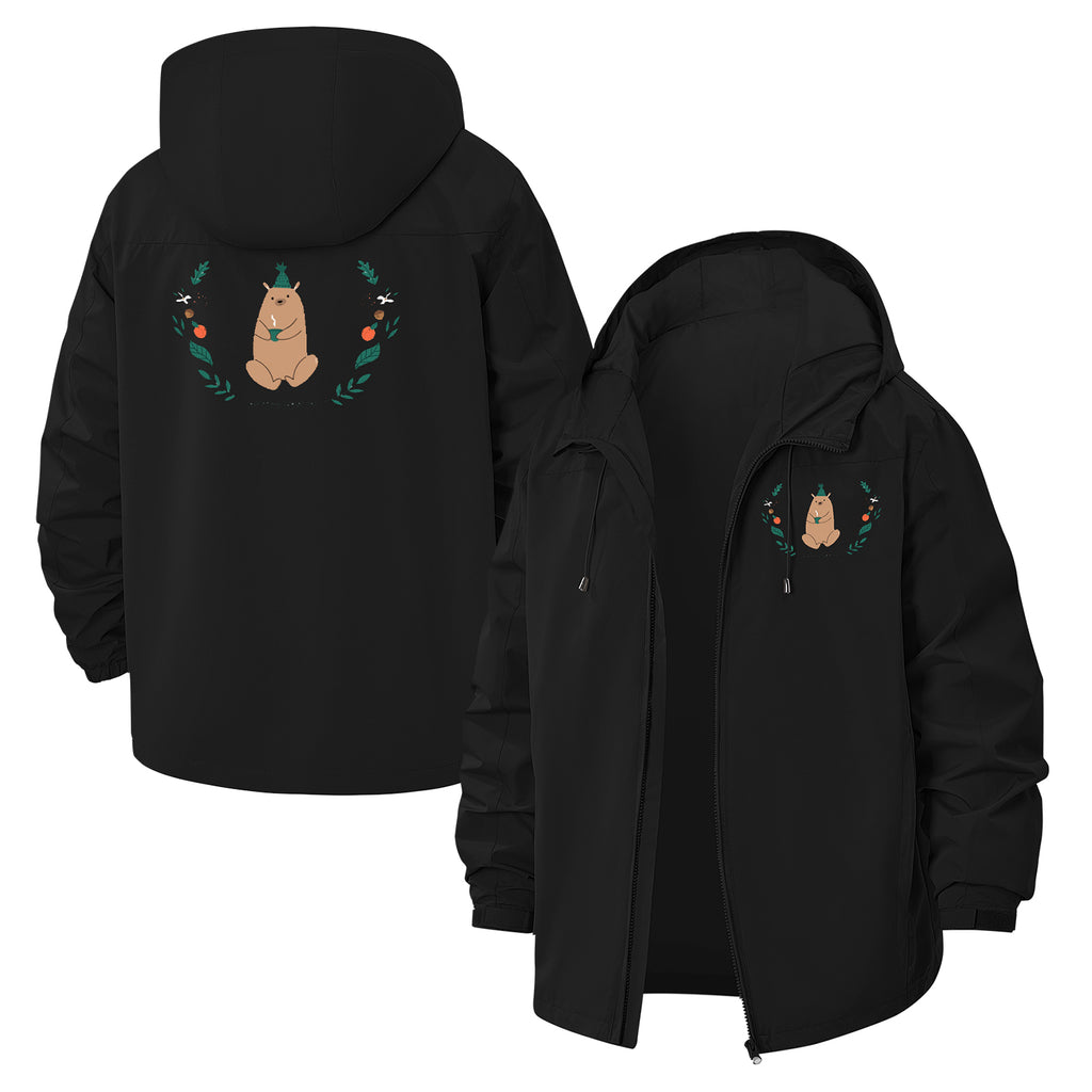 Bear Botanical Unisex Full-Zip Printed Waterproof Hooded Windbreaker