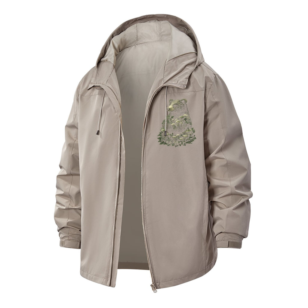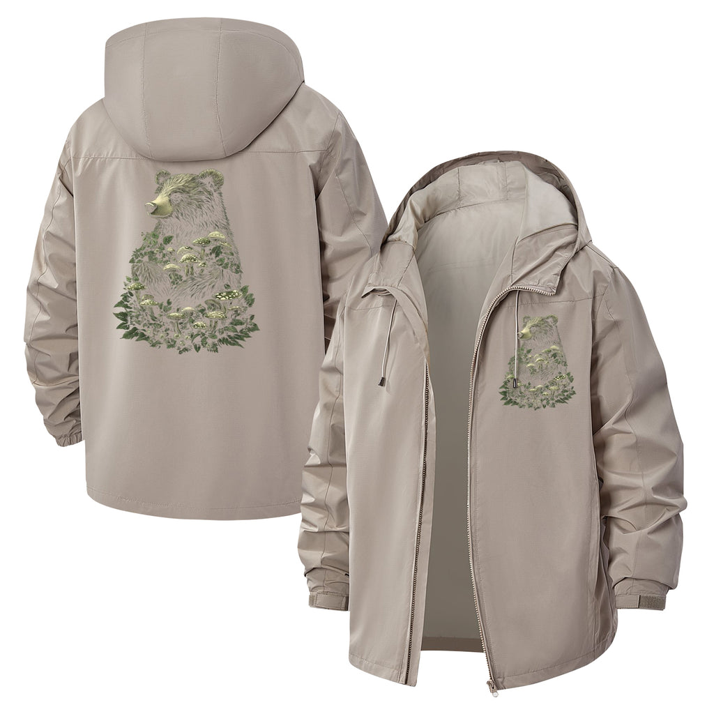 Bear Forest Unisex Full-Zip Printed Waterproof Hooded Windbreaker