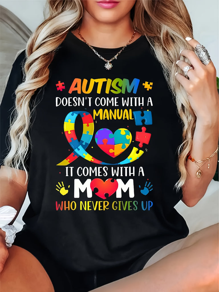 Black T Shirt Women Autism Awareness Colorful Puzzle Pieces Heart With Caring Mom, Country Shirts Womens, Women Tshirts