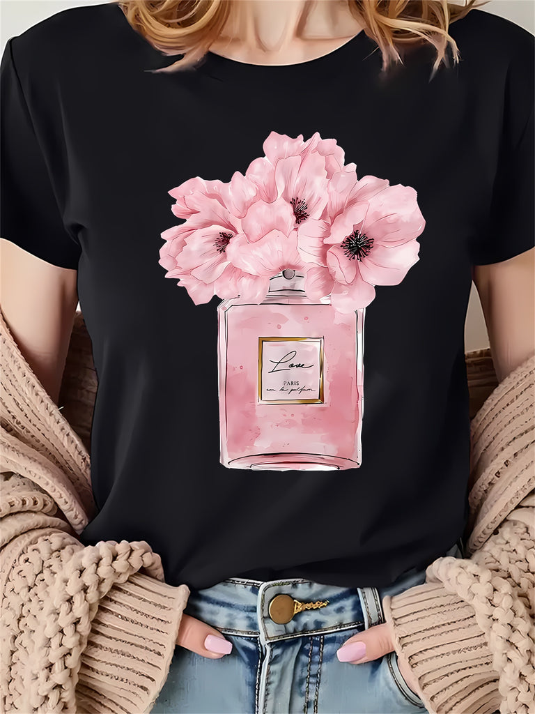 Blue Shirt Women Pink Floral Bouquet With Soft Petals In Elegant Glass Bottle, Vintage T Shirts Women, Womens Graphic Tshirts