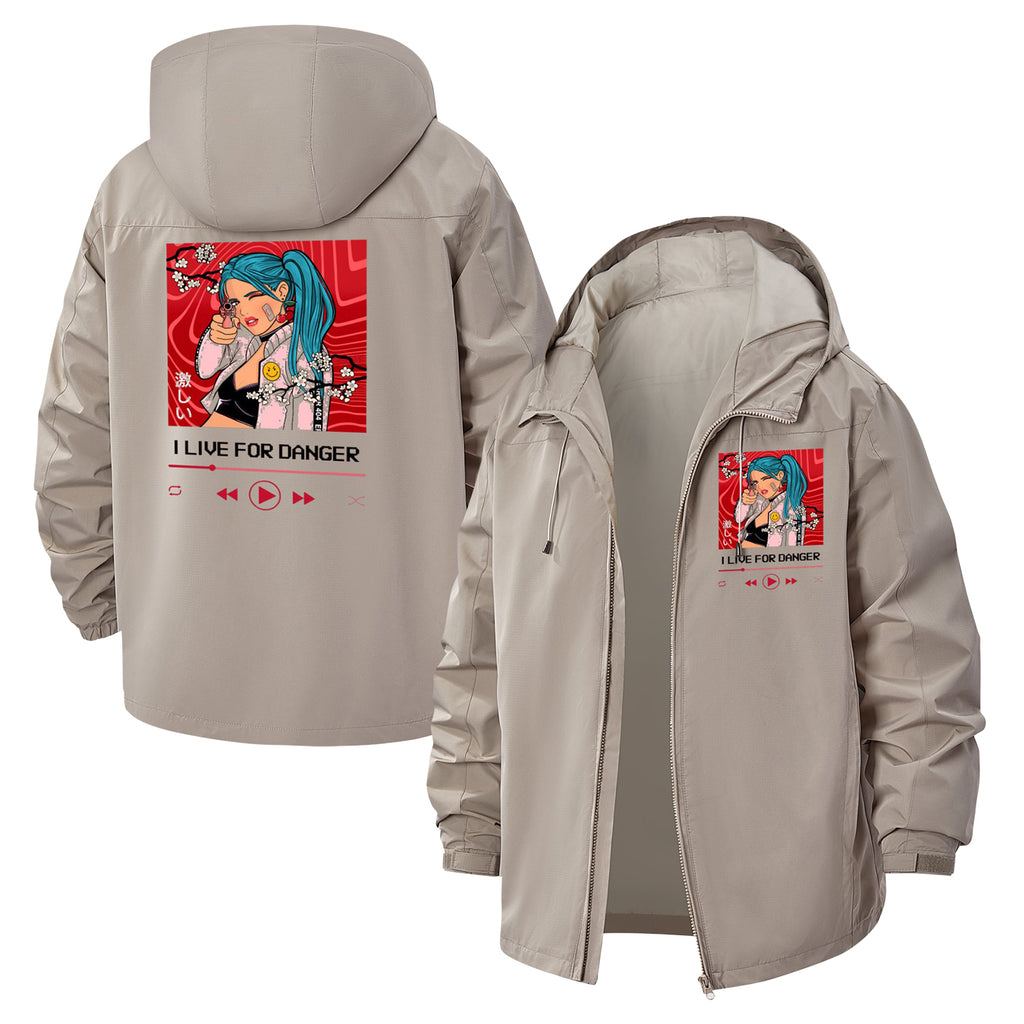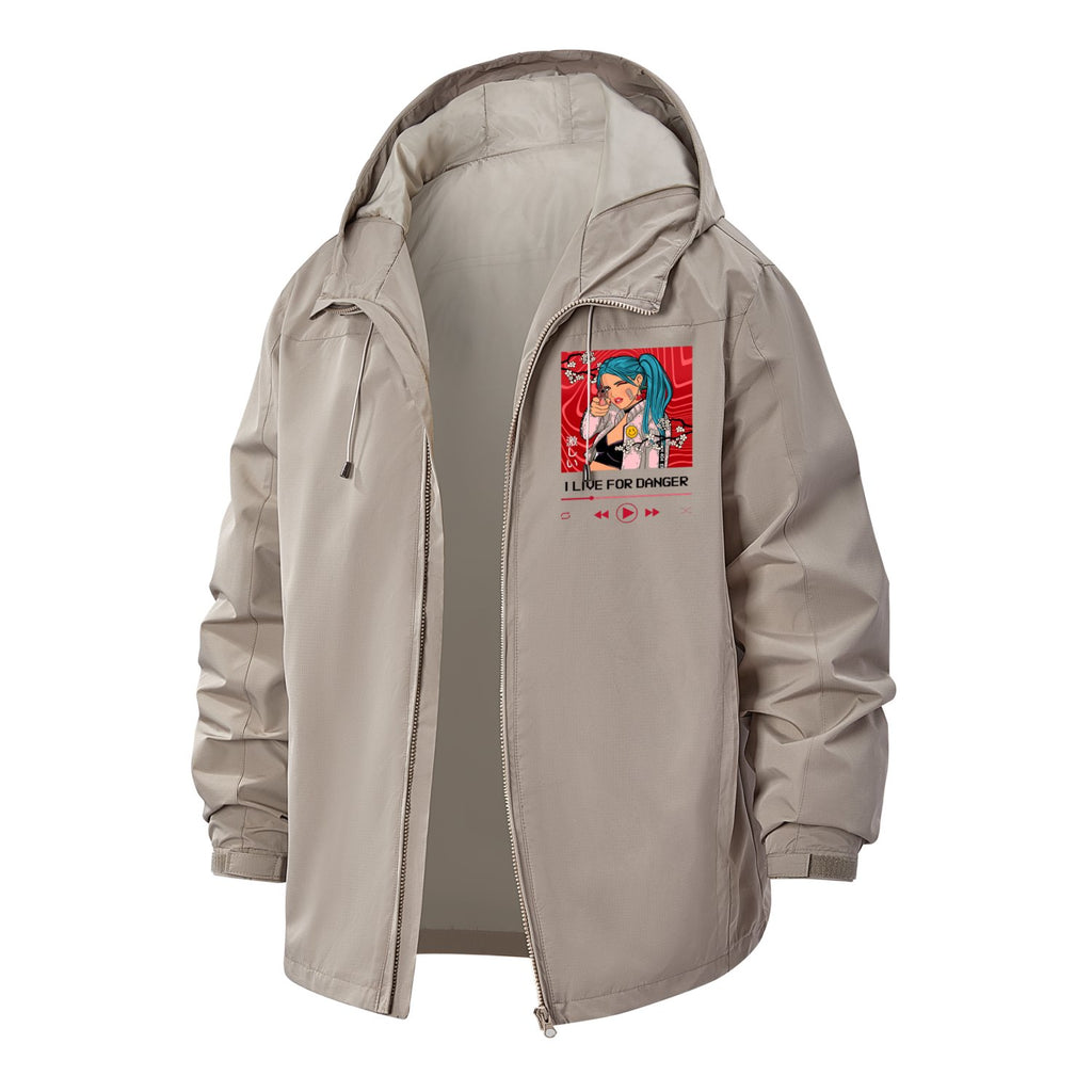 Bold Anime Character Unisex Full-Zip Printed Waterproof Hooded Windbreaker