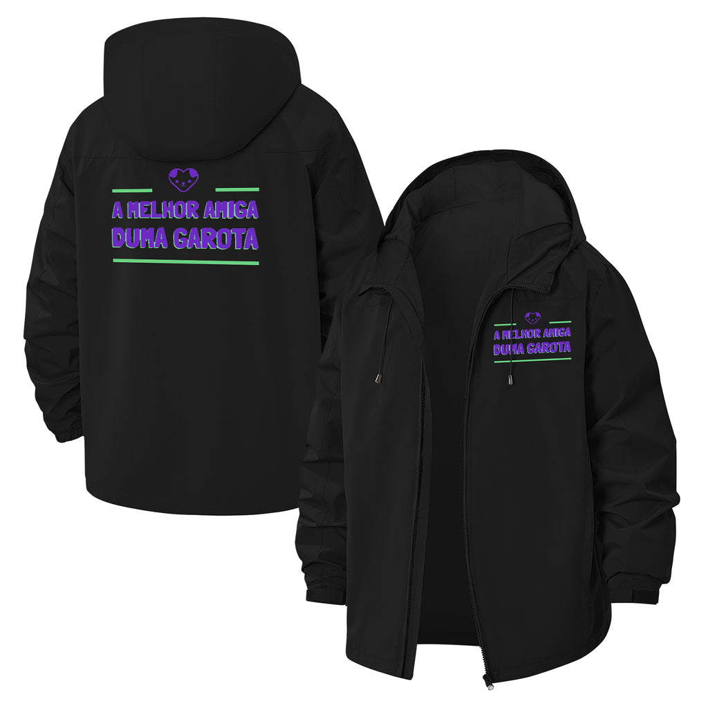 Bold Typographic Unisex Full-Zip Printed Waterproof Hooded Windbreaker