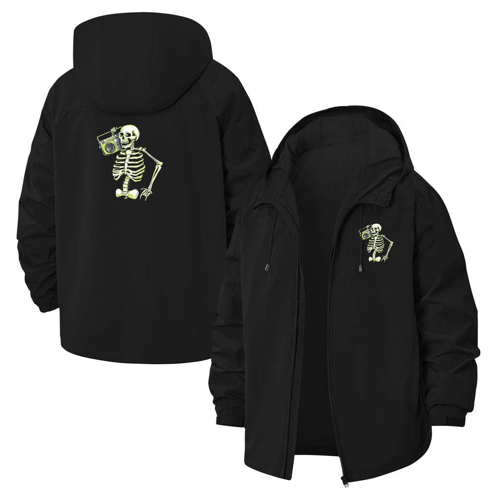 Boombox Skeleton Unisex Full-Zip Printed Waterproof Hooded Windbreaker