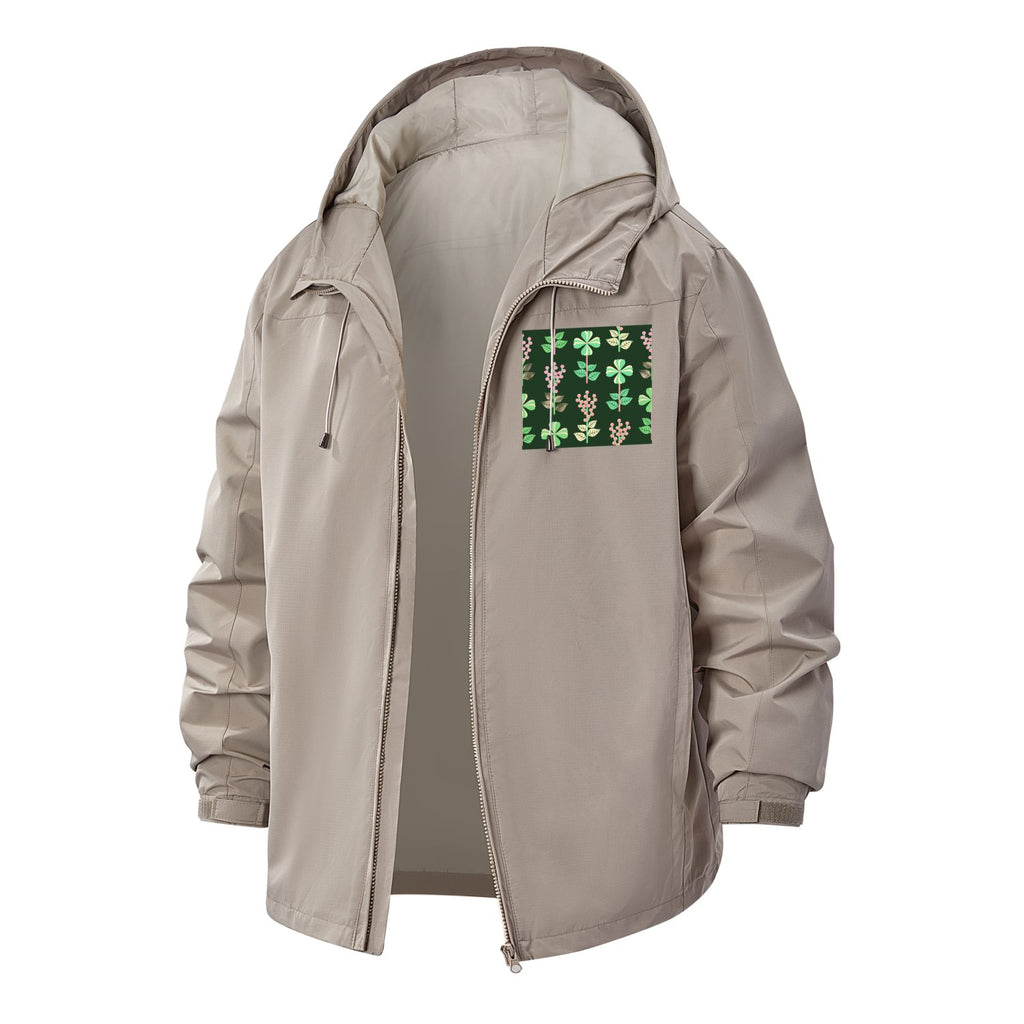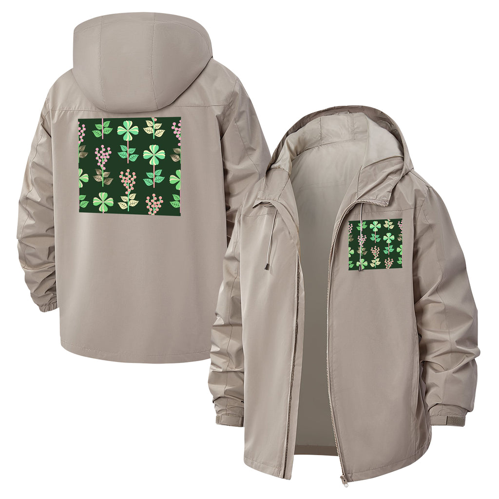 Botanical Motif Unisex Full-Zip Printed Waterproof Hooded Windbreaker