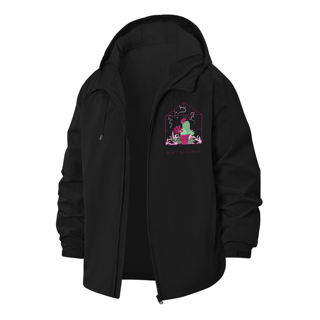 Cactus Illustration Unisex Full-Zip Printed Waterproof Hooded Windbreaker