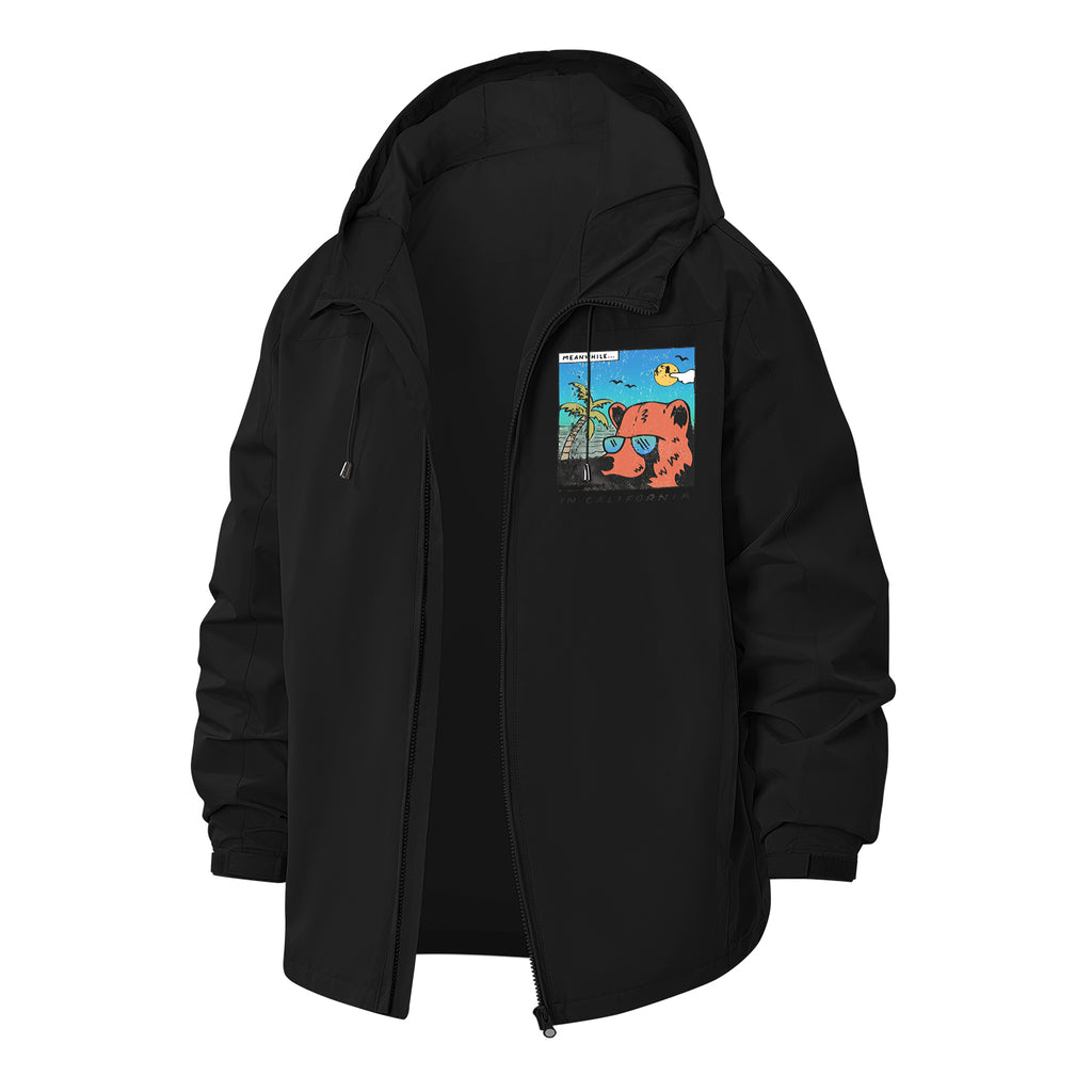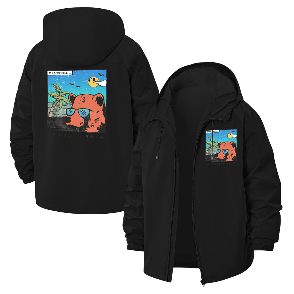 California Beach Bear Unisex Full-Zip Printed Waterproof Hooded Windbreaker
