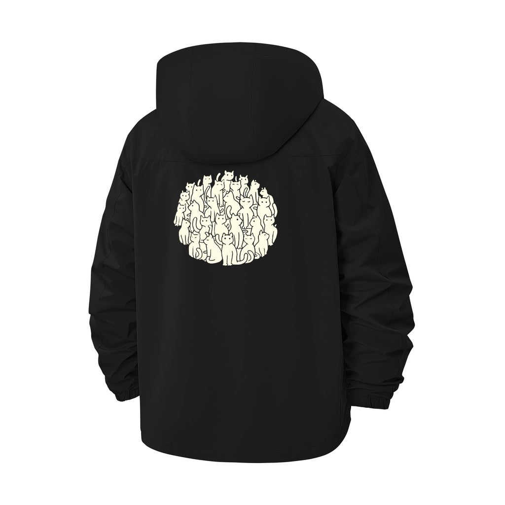 Cartoon Cat Crowd Unisex Full-Zip Printed Waterproof Hooded Windbreaker