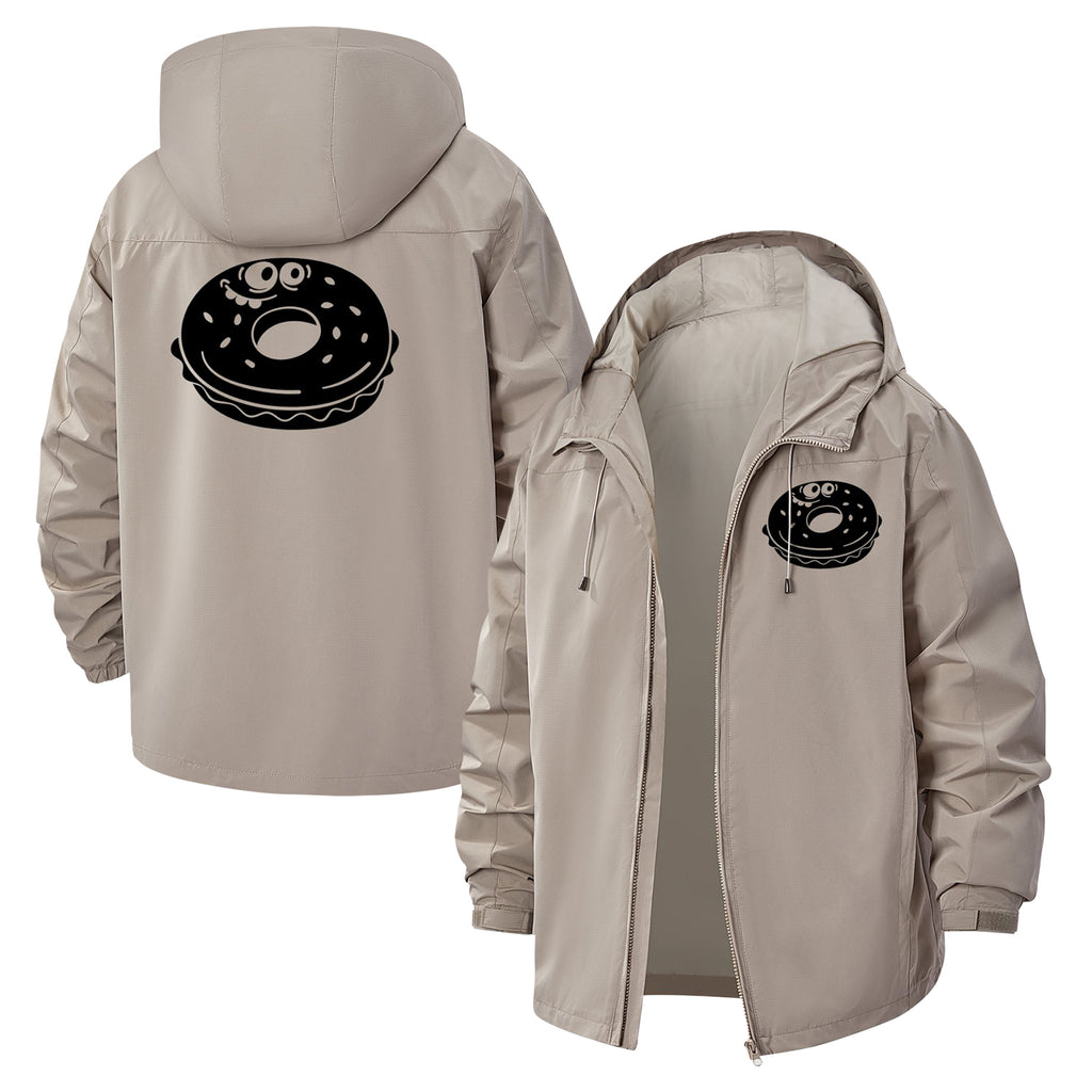 Cartoon Donut Unisex Full-Zip Printed Waterproof Hooded Windbreaker