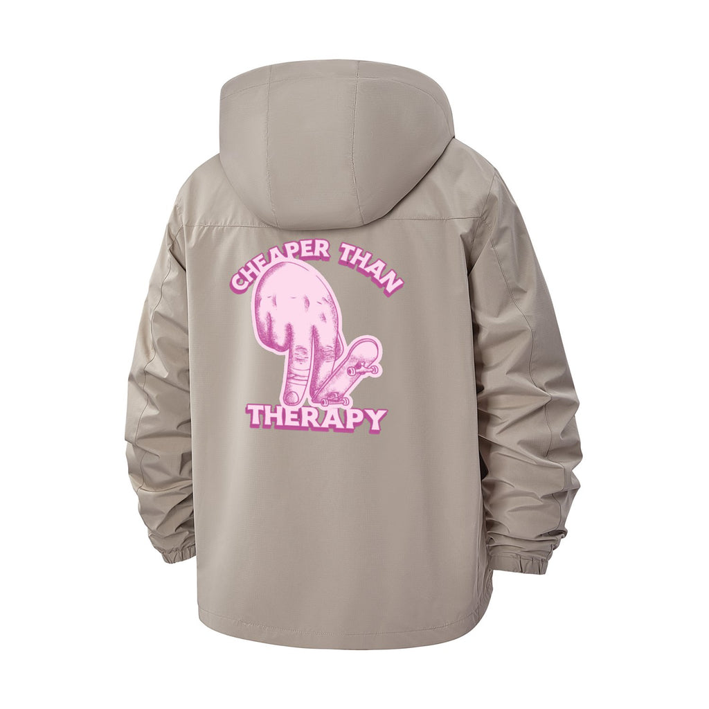 Cheaper Than Therapy Unisex Full-Zip Printed Waterproof Hooded Windbreaker