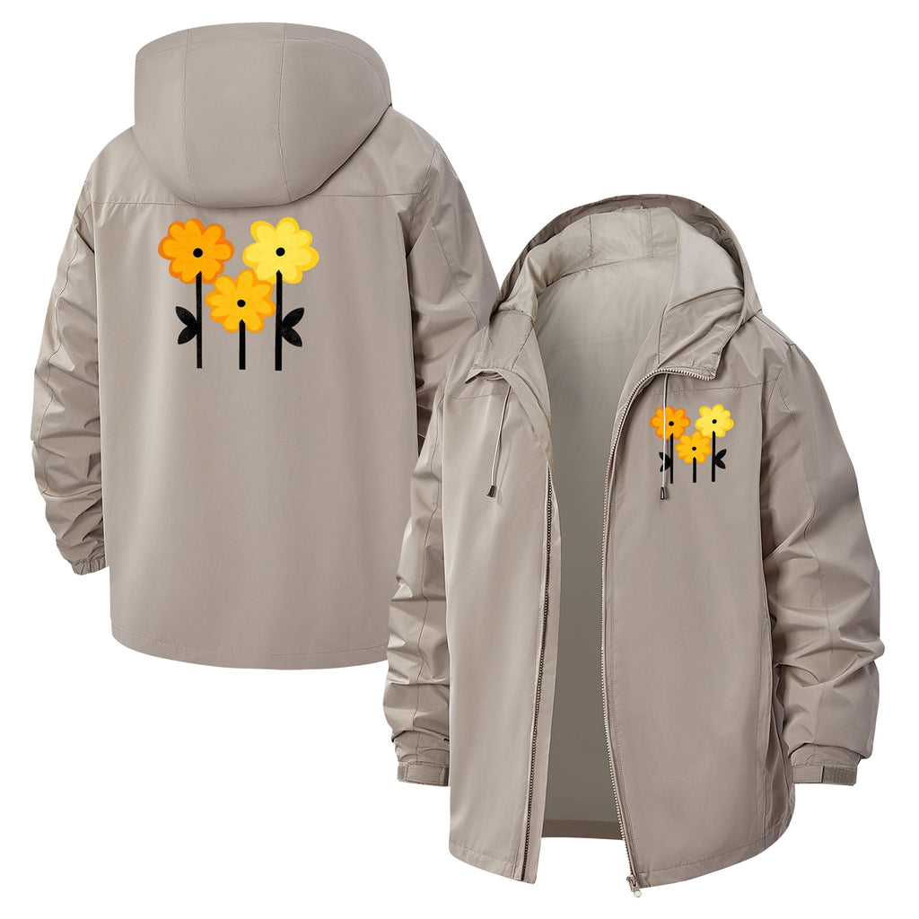 Cheerful Floral Unisex Full-Zip Printed Waterproof Hooded Windbreaker