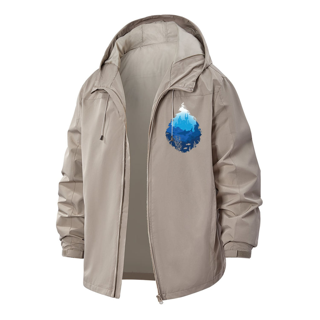 Cityscape Nature Drop Unisex Full-Zip Printed Waterproof Hooded Windbreaker