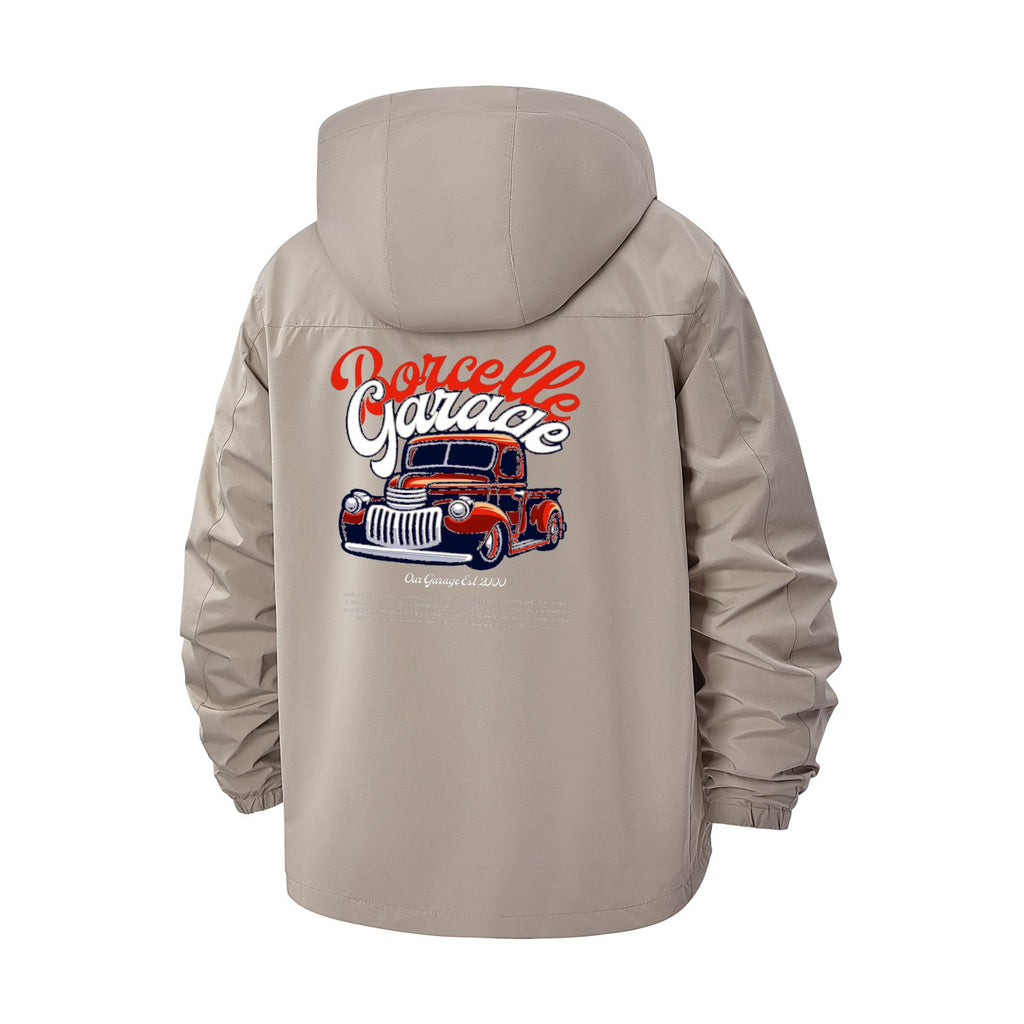 Classic Car Garage Unisex Full-Zip Printed Waterproof Hooded Windbreaker