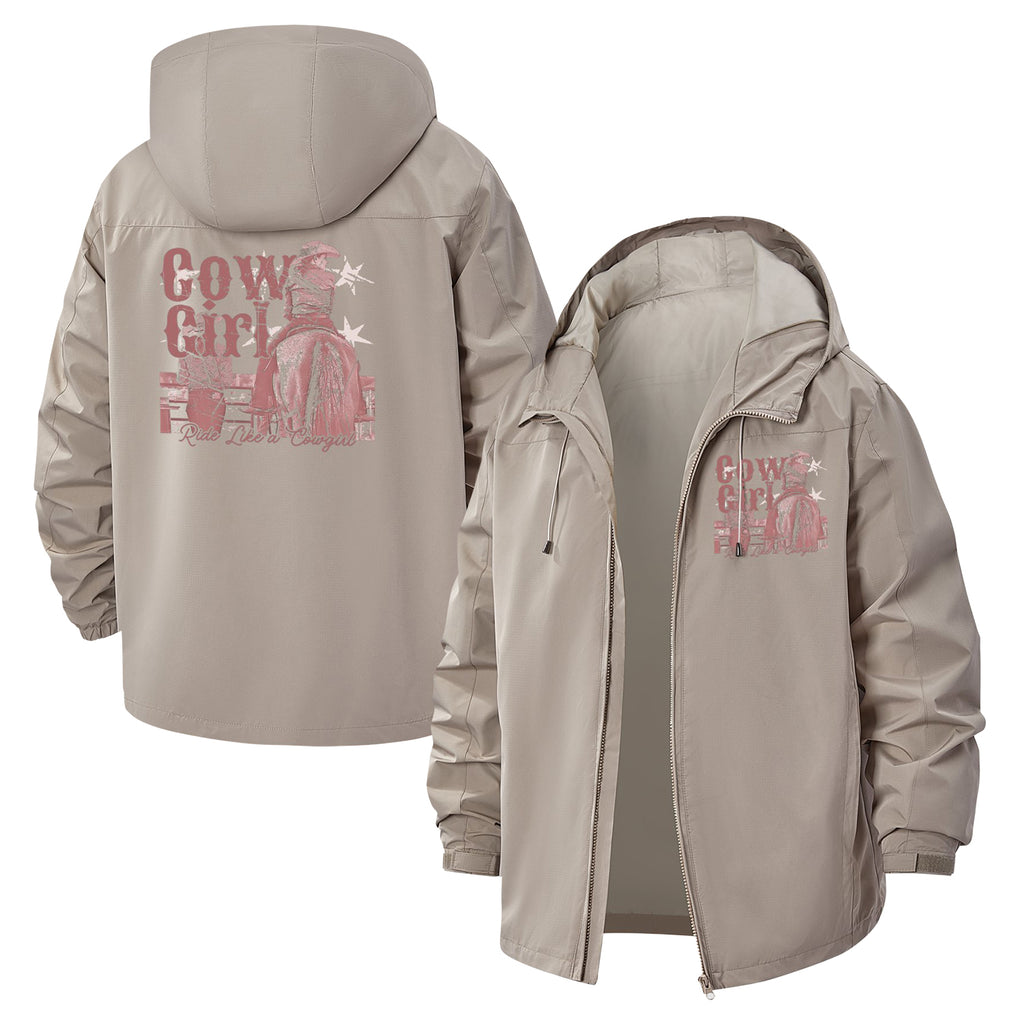 Cowgirl Western Unisex Full-Zip Printed Waterproof Hooded Windbreaker