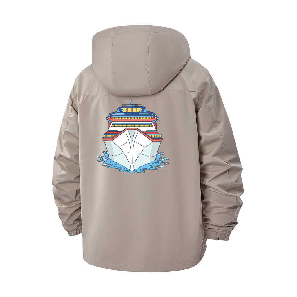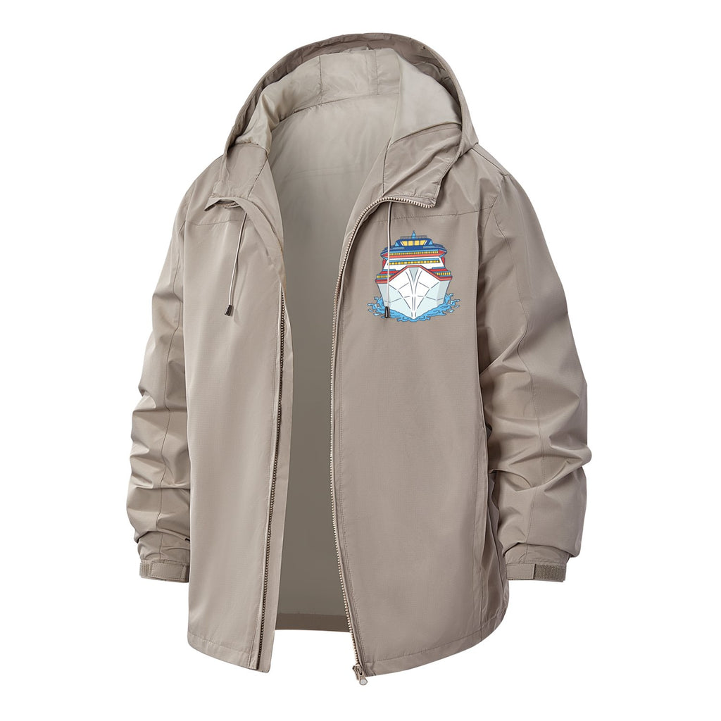 Cruise Ship Graphic Unisex Full-Zip Printed Waterproof Hooded Windbreaker