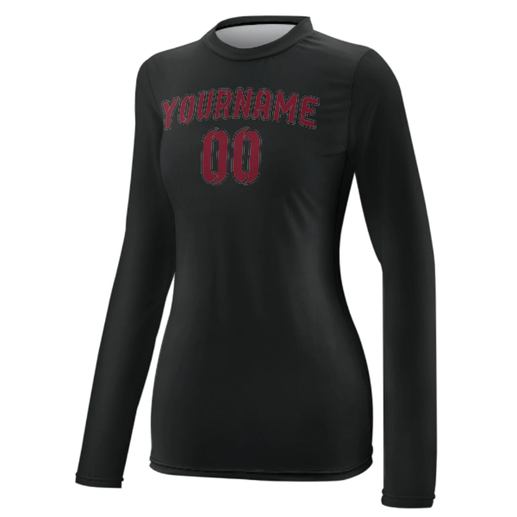 Custom Black Crimson Red Women's Long-Sleeve Shirt