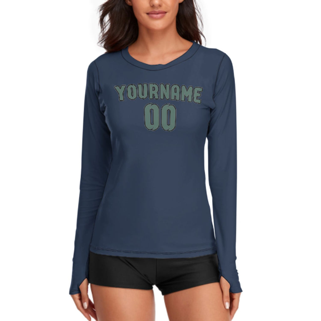Custom Blue Blue Green Women's Long-Sleeve Shirt