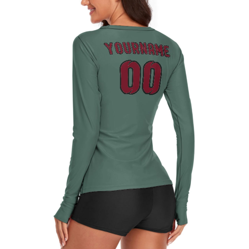 Custom Blue Green Crimson Red Women's Long-Sleeve Shirt