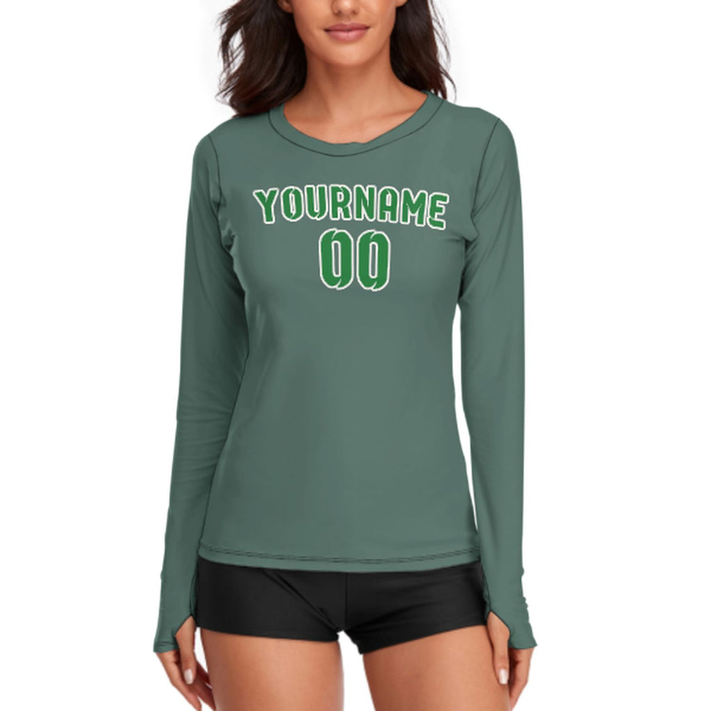 Custom Blue Green Emerald Green Women's Long-Sleeve Shirt